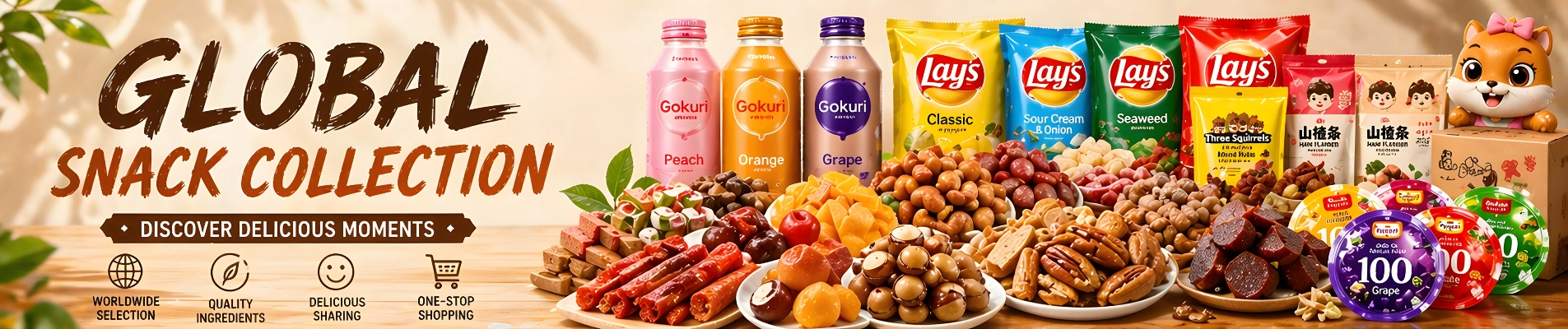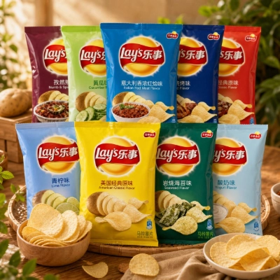 Popular savory and sweet packaged snacks.