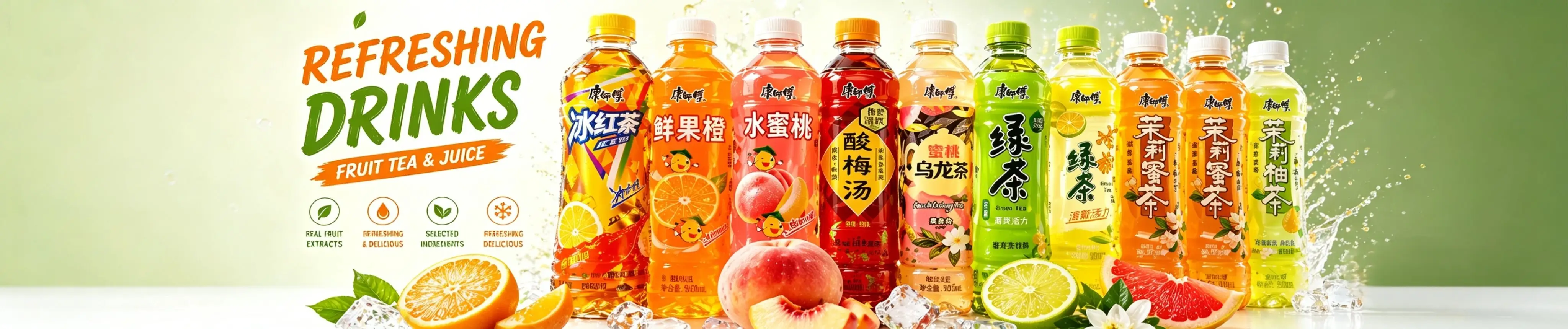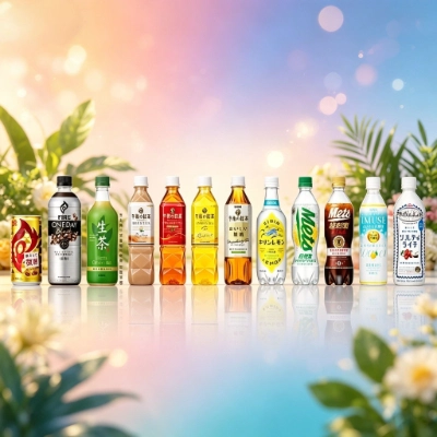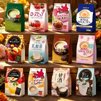 Tea, juice, milk drinks, and specialty beverages.